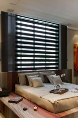 Uma verdadeira obra de arte na sua janela. O movimento inverso de suas superfícies produzida com duas faixas de tecido diferentes, uma translúcida e outra opaca, crian um visual enquanto uma sobe e a outra desce, esse movimento faz o abrir e fechar da cortina Stillo seja uma grata experiência.