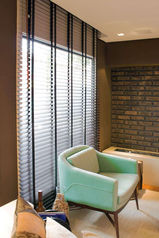 Elegante, a Persiana de Madeira permite o controle da luminosidade, mantendo a privacidade com o simples movimento de suas lâminas.